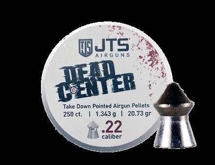 El balín JAC111 JTS Dead Center para carabina de aire comprimido es preciso, consistente y de alta calidad, perfecto para la caza menor. Tiene un calibre .22, una punta afilada y un peso de 20.73 grains.