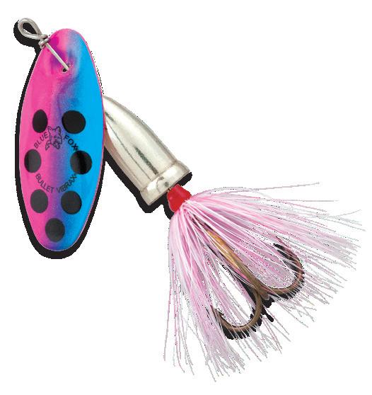 MODEL NO. BLADE SIZE WEIGHT VBF0 0 1/8 oz. VBF1 1 3/16 oz. VBF2 2 1/4 oz. VBF3 3 3/8 oz. 250 Black/ Flo. Red 251 Black/ Flo. Yellow 252 Flo.Yellow/ Flo. Red 253 Silver/ Black 254 Silver/ Flo. Yellow 255 Silver/ Hot Pink 256 White/Black 257 Black/ Flo. Yellow Dots 258 Gold Black/ Flo. Yellow 259 Gold/ Brown 616 Rainbow Trout