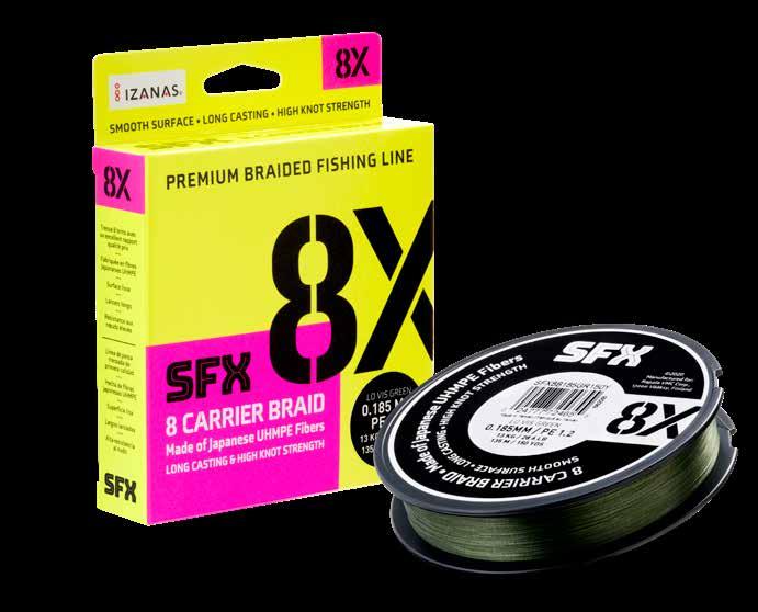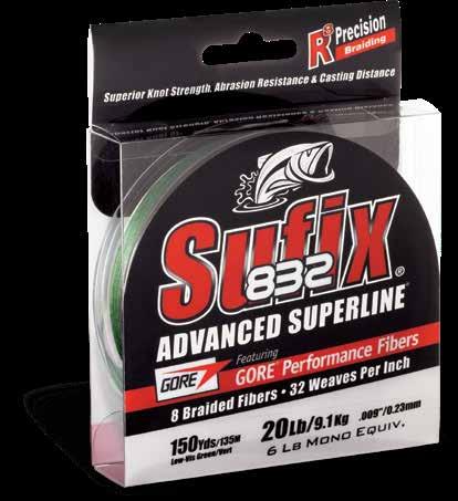 Color Injection process provides two-times more “Colorfast” retention than competing braids • The densely braided line made with HMPE fibers and high weave-count gives consistent quality, uniform diameter (increasing abrasion resistance) and line performance • Low stretch offers exceptional lure control, ultimate bite detection and firm hook setting power Superior knot and shock strength • Multi-purpose braid that excels in freshwater and saltwater applications