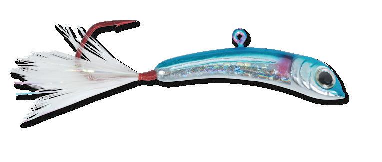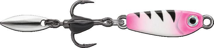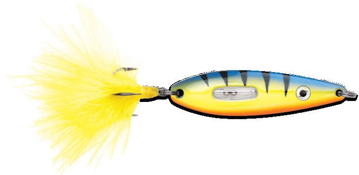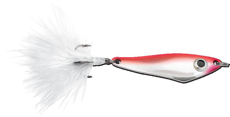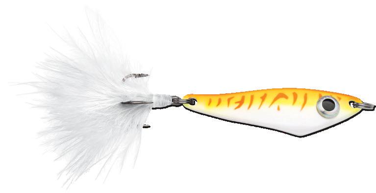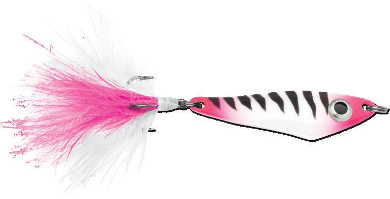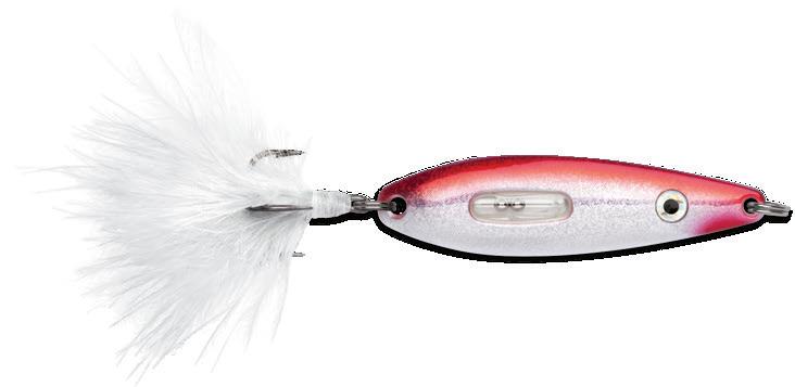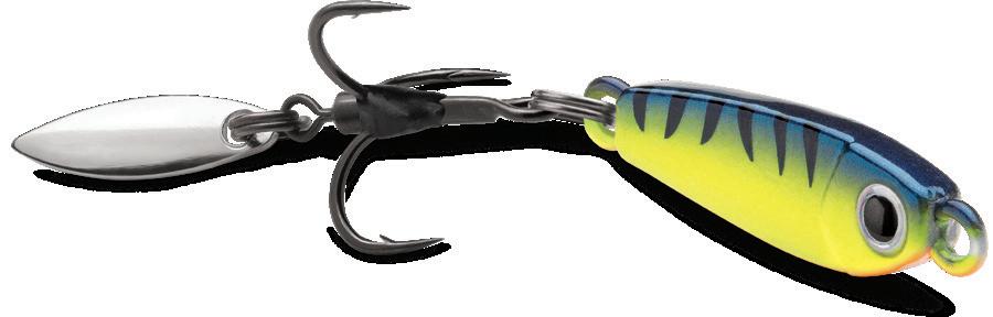 When the new Hatchet Spoon hits the water, its intense rapid start & fluttering energy delivers maximum action and vibration, grabbing the attention of aggressive fish. We’ve dressed this spoon with a Marabou teaser tail, which conceals a super sharp VMC ® treble hook. Oversized holographic eye and a variety of UV, polished metal attractor and custom color patterns. Ultra Glow colors last up to 15 minutes.