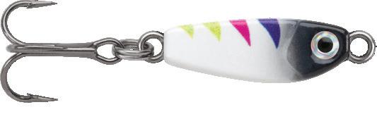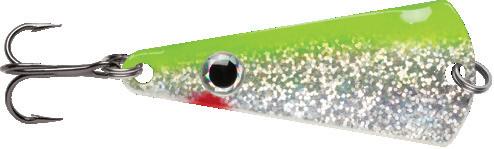 The Tingler Spoon’s wide wobbling action exaggerates the movement of dying baitfish with its unique curved body and V-shaped design. Large 3D holographic eye and a wide variety of UV, holographic attractor and live baitfish patterns. Ultra Glow colors last up to 15 minutes.