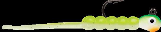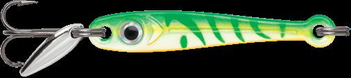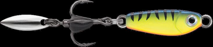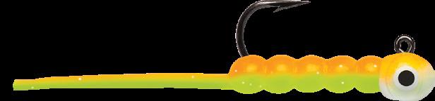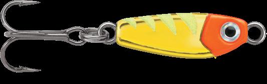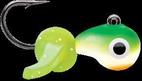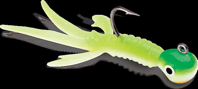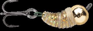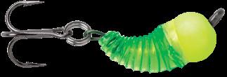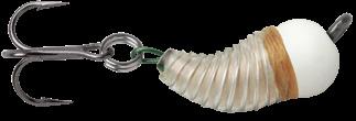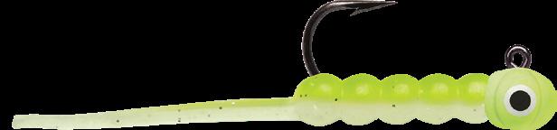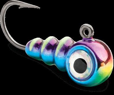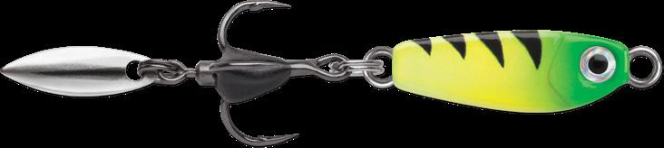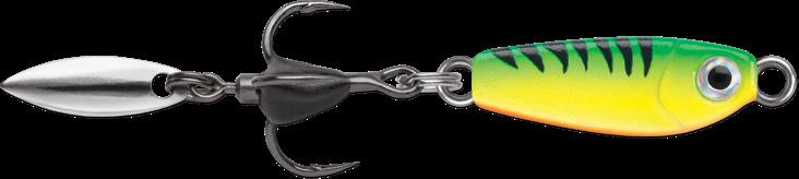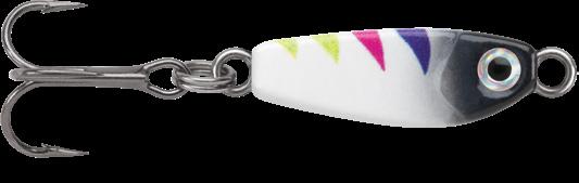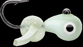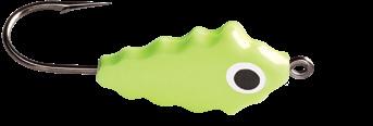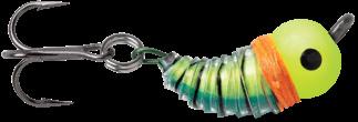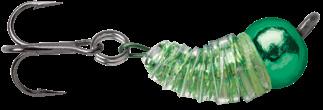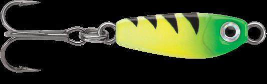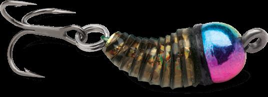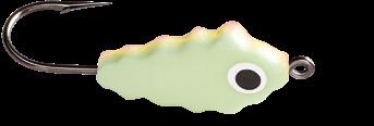 Small larva-like realism for strike inducing attraction. Lead free Tungsten construction provides the best sensitivity and return on traditional fish-finders and forward facing sonar. Premium VMC ® treble hook increases hook up percentages. Available in polished metal or Ultra Glow pigments that last up to 15 minutes.