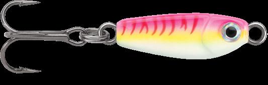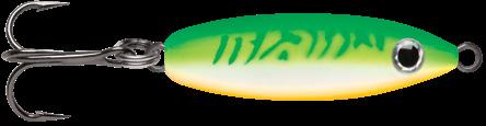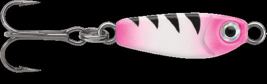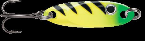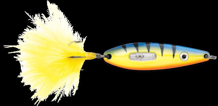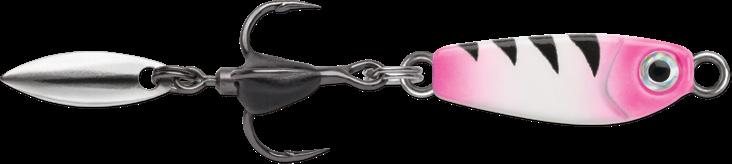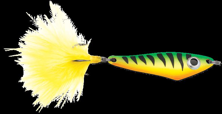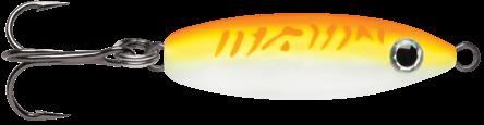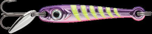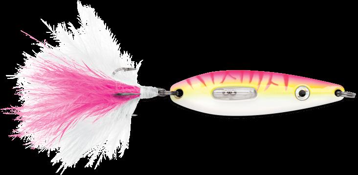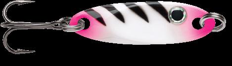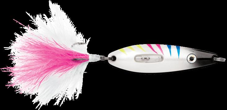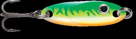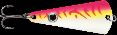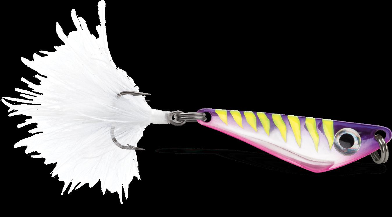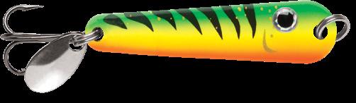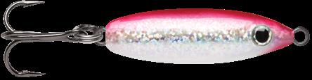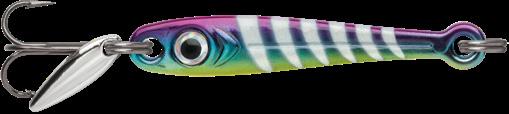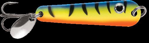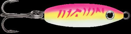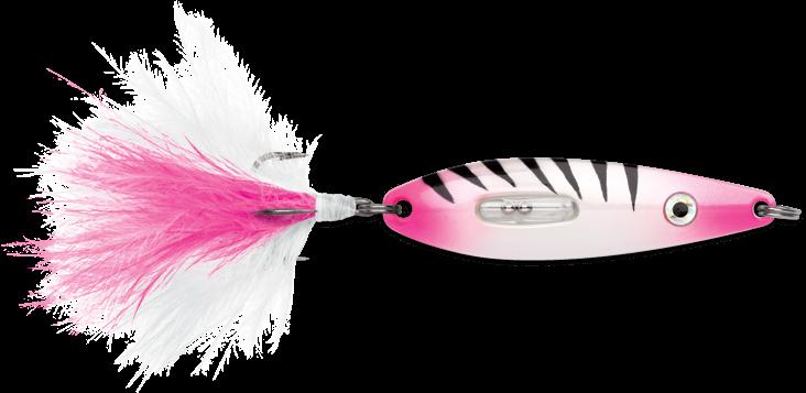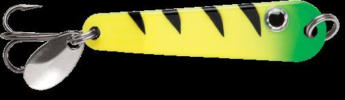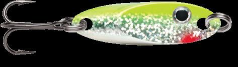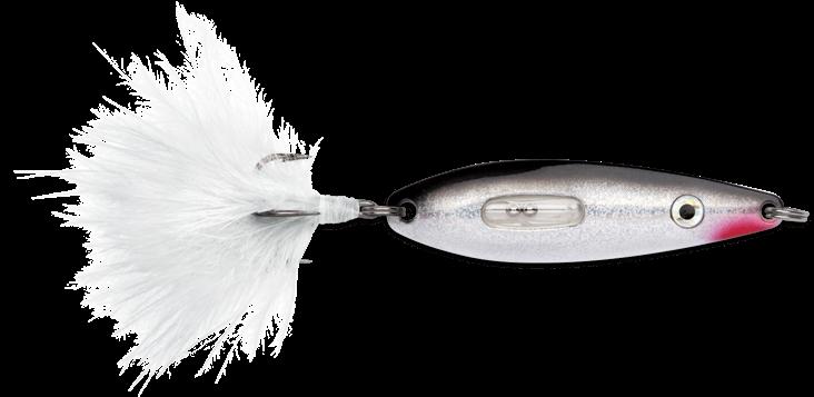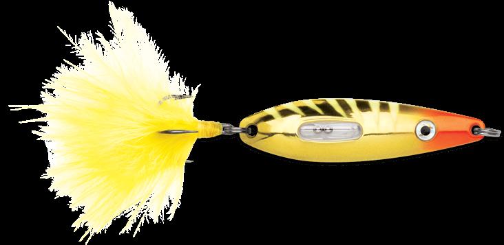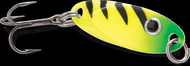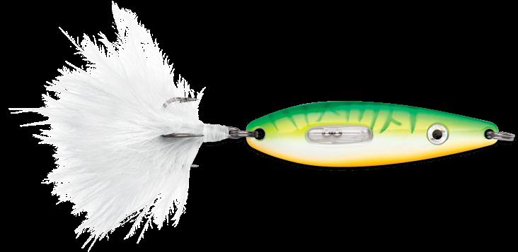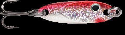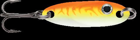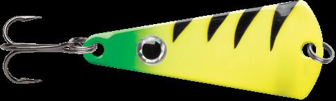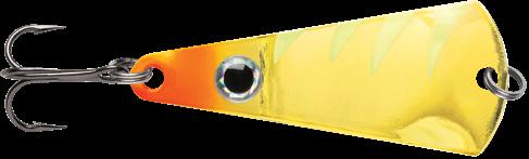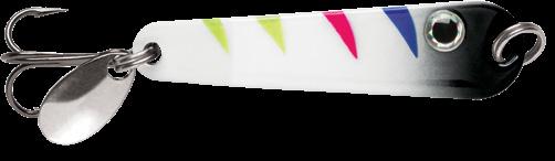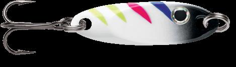 The Tingler Spoon’s wide wobbling action exaggerates the movement of dying baitfish with its unique curved body and V-shaped design. Large 3D holographic eye and a wide variety of UV, holographic attractor and live baitfish patterns. Ultra Glow colors last up to 15 minutes.