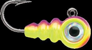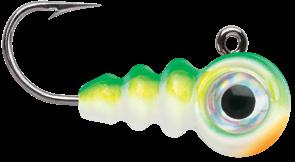 Provides precision vertical jigging with a design that maintains a 90-degree presentation of live or imitation bait. Features VMC ® exclusive super sharp Power Gap hook and an oversized 3D holographic eye.