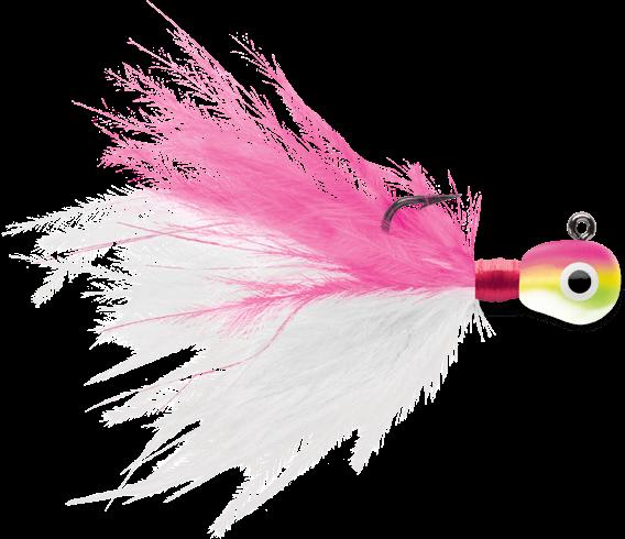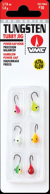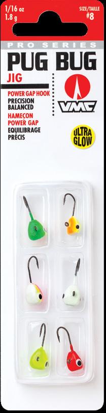 Natural flowing Marabou creates action and mimics natural prey. The VMC ® Tungsten Jig Head delivers your presentation to the strike zone faster, with better sonar return than lead. Exclusive VMC ® Power Gap hook features a wider round gap, greatly increasing your hook rate percentage.