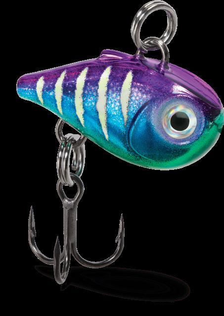 Its intense fluttering action combined with an exposed rattle chamber deliver maximum sound vibrations. Marabou teaser tail conceals a super sharp VMC ® treble hook. Holographic eye and a variety of patterns. Ultra Glow colors last up to 15 minutes.