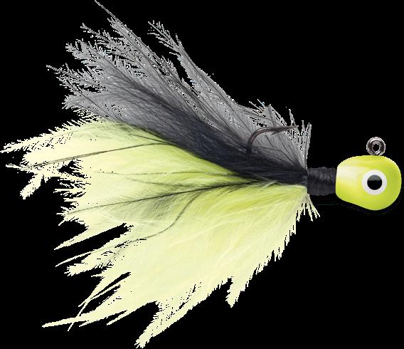 The VMC® Tungsten Bullfly Jig has a longer & bulkier body with goose feather tail and wings. Tungsten drops fast to get to those hungry fish as they feed. Exclusive VMC® Power Gap hook offers a 5% wider gap than traditional jig hooks for high efficiency hooking rate. The precision balance is amplified by a 90° hook eye which ensures the optimal horizontal position.