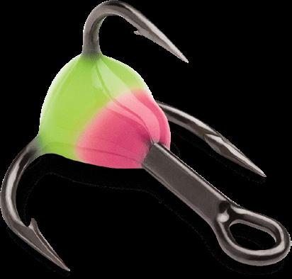 The classic VMC ® 9650 Round Bend Treble is enhanced with a durable epoxy resin infused with a choice of five Ultra Glow colors that stay charged for up to 15 minutes. 1X Strong, Black Nickel, Hi Carbon Steel with Cut Point.