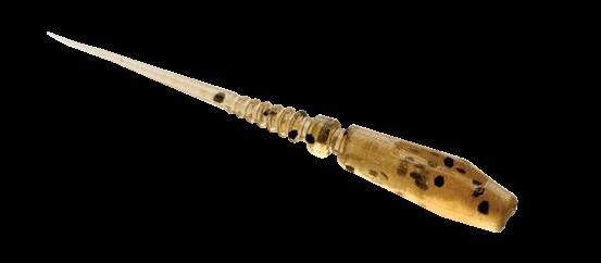 Constructed of heavy-duty brass, beveled edges and tapered design offer an enticing fluttering action. An array of colors with holographic eyes and Ultra Glow pigments that last up to 15 minutes.