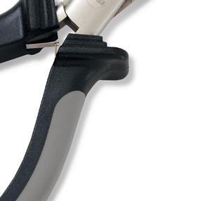 Offset tool design makes fast work of changing out split rings and hooks. Large, spring-loaded co-molded handles make one-handed operation a breeze.