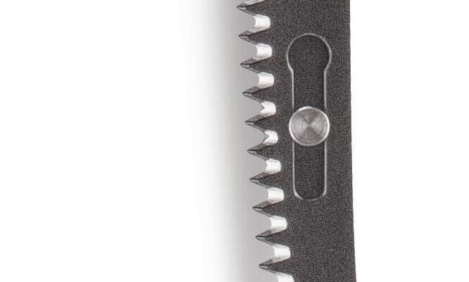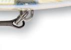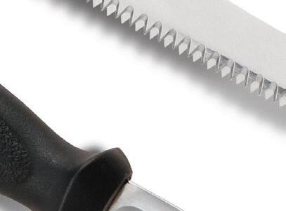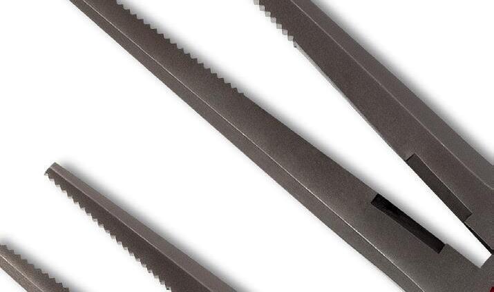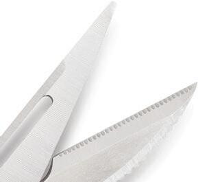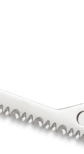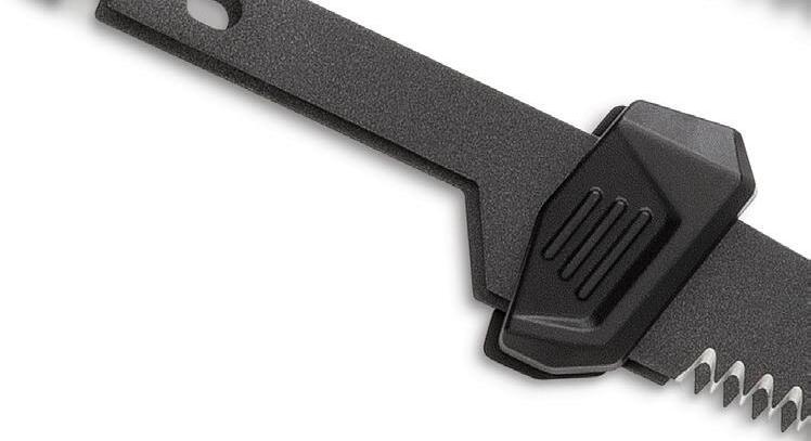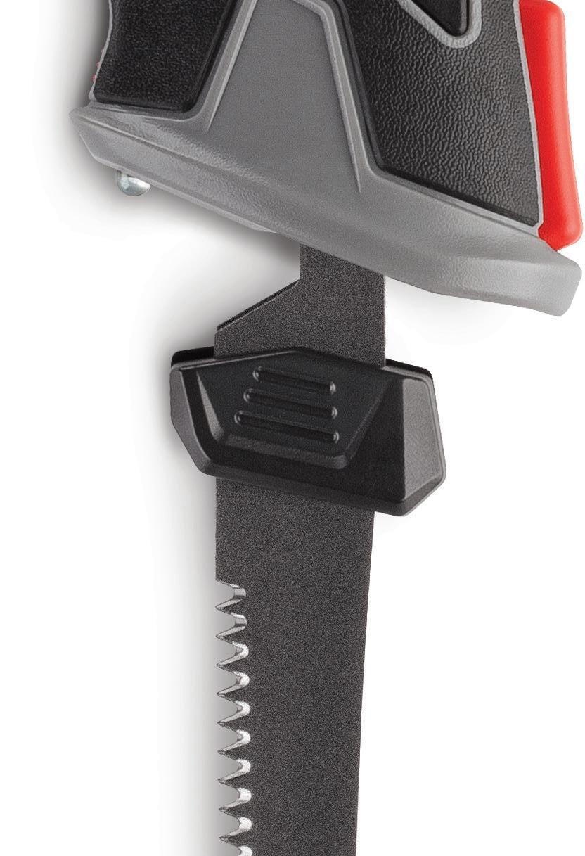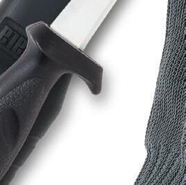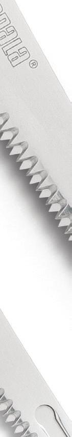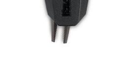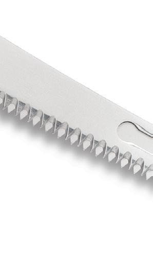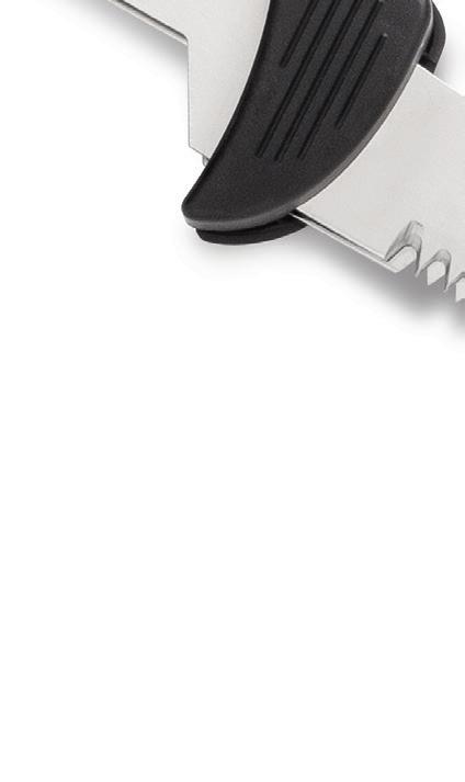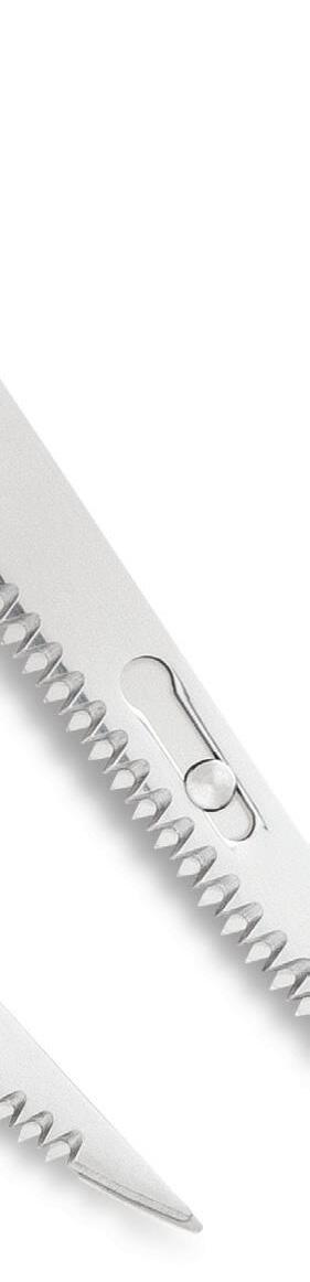 Ultra fine serrated cutting edge specially designed to grip and hold tough braided line.