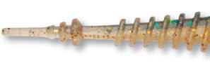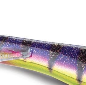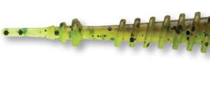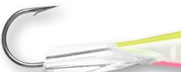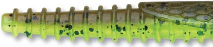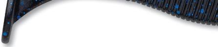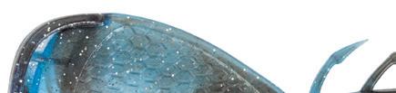 Primary curl tail appendages provide enticing fluttering action at the slowest speeds • Back ribs help hide the hook point and maximize usage • Forward-facing legs provide subtle, secondary action with the slightest movement • Smart Injection Technology ® combines custom combinations of color, flake, salt and scent, that are added precisely where needed for the perfect presentation