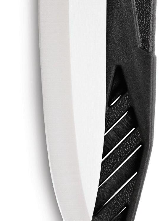 Leverage lopping to fine detail trimming. It separates for a straight knife and serrated knife/fish scaler and bottle opener/bone cracker and vegetable peeler. 2-piece design allows for easy cleaning.