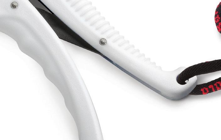 Retractable cutting blades with serrated cutting edge grip and effortlessly cut tough braided line. Always at the ready with the included neck lanyard.