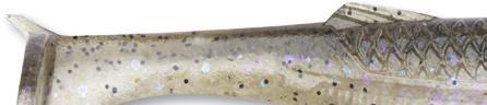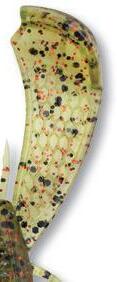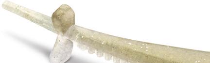 Dominant mid-strolling (Shake-n-Bake) presentation when rigged on a ball head jig • Enticing tail-kicking trailer action • Nose hook, weightless Texas rig, belly-weighted hook, or use as a soft plastic jerkbait which falls with a shimmy • Smart Injection Technology ® combines custom combinations of color, flake, salt and scent, that are added precisely where needed for the perfect presentation