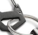 360° rotating, quick release carabiner with split ring for tool attachment.