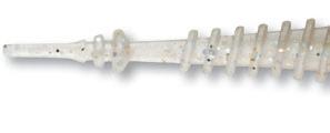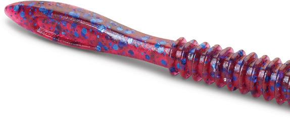 Notched, tapered tail generates quivering with the slightest movement • Integrated slot for VMC® Crossover Ring ® to maximize usage when Wacky or Neko rigging • Smart Injection Technology ® combines custom combinations of color, flake, salt and scent that are added precisely where needed for the perfect presentation