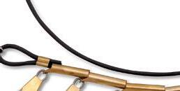 Corrosion resistant, 5' 6" vinyl coated stainless steel cable is rigged with nine solid brass sliding-sleeve clasps and two swivel end clasps. Rated for 300 lb. capacity.
