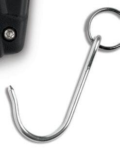 Compact stainless steel construction. Off-set tool design makes it a snap to change out or replace hooks. Soft-grip handles with leaf spring for easy one-handed operation. Includes wrist lanyard.