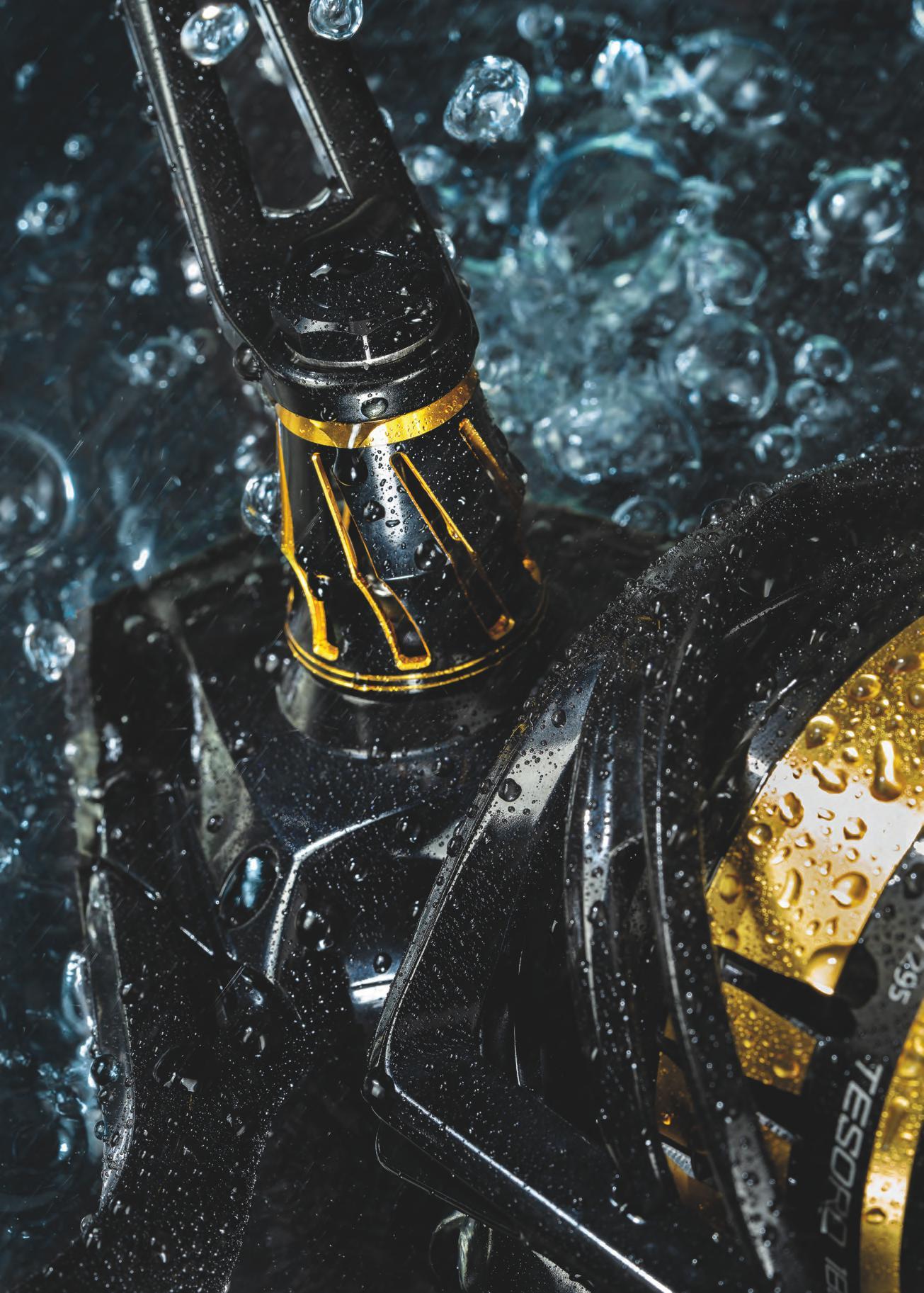 Il massimo delle prestazioni in acqua salata, il Tesoro è dotato di un ingranaggio di trasmissione sovradimensionato in ottone, per una maggior resistenza e durata, ulteriormente migliorato dal design di stabilizzazione degli ingranaggi per un migliore allineamento e scorrevolezza. Il corpo idrosigillato classificato IPX-7 protegge dall’immersione completa in acqua e dagli schizzi. All’interno del corpo interamente in Alumilite del Tesoro, risiede un sistema Dual Force Drag con ben 29,9 kg di potenza massima.