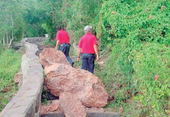 Las lluvias que se registraron durante la noche del lunes y madrugada de ayer provocaron deslaves en el Cerro del Crestón, por lo que el acceso al Faro de Mazatlán quedó bloqueado por una enorme roca que cayó sobre los escalones.