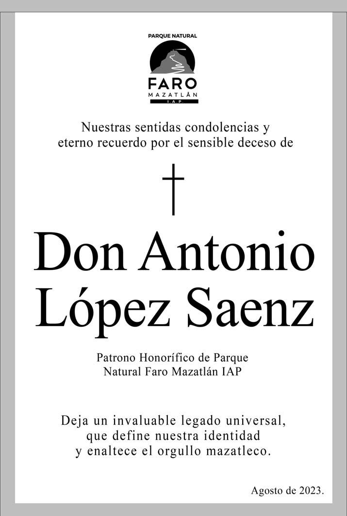 “Lamentamos mucho en Venados la muerte de nuestro gran amigo, e ícono de Mazatlán, Antonio López Sáenz, para Venados y para la comunidad mazatleca es una tristeza el deceso