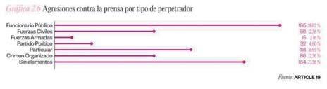 “El Presidente de la República no ceja en su estrategia de anular al mensajero”, alerta el informe. De estos 176 eventos, continúa el documento, 44 configuraron ataques contra la prensa, en especial, 33 cometidos directamente por el titular del Ejecutivo federal. “Es lamentable que no hubiera un golpe de timón en el ánimo de descalificación justo en el año que más se mató a periodistas en el País”.