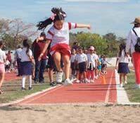 Decenas de niños de diferentes planteles de la Zona 08 compiten en diferentes pruebas atléticas en la pista de tartán