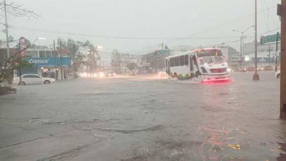 Las fuertes lluvias acompañadas de ráfagas de viento y actividad eléctrica que se presentaron la tarde del viernes generaron inundaciones en diferentes avenidas de Mazatlán colapsando el tráfico vehicular y causaron algunos daños y retrasos en algunos vuelos en el Aeropuerto Internacional “General Rafael Buelna”. Fue cerca de las 17:00 horas cuando comenzaron las fuertes lluvias acompañadas de ráfagas de viento generadas por una inestabilidad atmosférica que incrementó el desarrollo de tormentas acompañadas de actividad eléctrica en los municipios de centro y sur del estado para la tarde y noche, de acuerdo con autoridades municipales. En menos de media hora las lluvias provocaron inundaciones en partes bajas de vialidades, por lo que fue necesario cerrar a la circulación vehicular los cruces de las avenidas Rafael Buelna y Marina, en el Fraccionamiento El Toreo y Rafael Buelna y Querétaro, en la Colonia Sánchez Celis. También fue necesario cerrar un tramo de la Avenida Insurgentes, frente a la Colonia López Mateos. En ese sitio, un camión urbano de pasajeros se quedó varado en el camellón central al tratar de retornar para evitar pasar por la parte inundada, por lo que el transporte fue auxiliado por personal de la Coordinación Municipal de Protección Civil y el Cuerpo Voluntario de Bomberos para poder salir de esa zona con todo y pasajeros. En ese mismo tramo el nivel del agua y el paso de camiones pesados hizo que algunos automóviles pequeños flotaran o se inundaran más de la mitad. Por la interrupción del transporte público en las zonas inundadas, algunos menores de edad tuvieron que cruzar caminando la parte anegada de la Avenida Insurgentes.