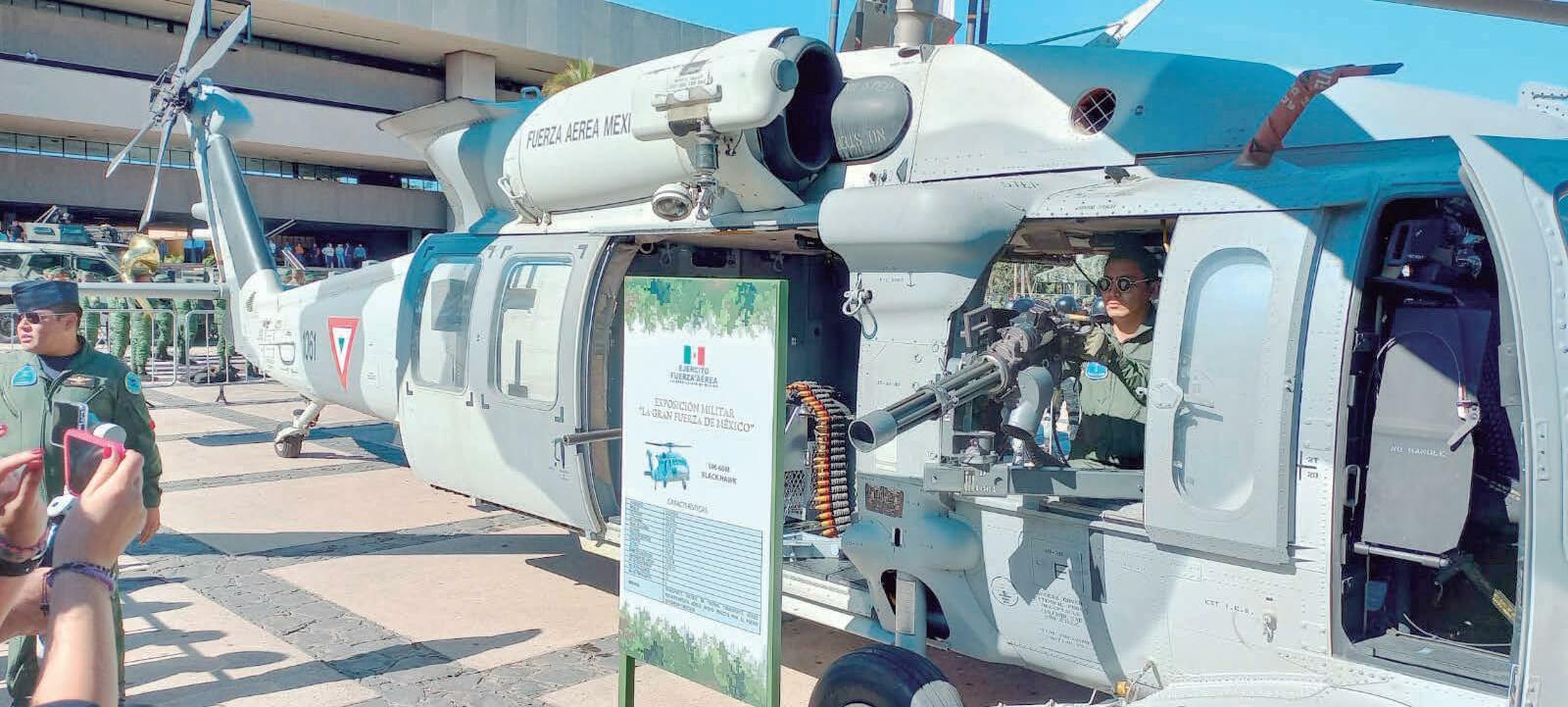 A un mes de la réplica de Jueves Negro y mostrando vehículos y helicópteros artillados, además de unidades todo terreno colocados en la explanada de Palacio de Gobierno, la Secretaría de la Defensa Nacional inauguró la mañana del viernes la Exposición “La Gran Fuerza de México”, en la que la población puede tener acercamiento directo con el personal militar.