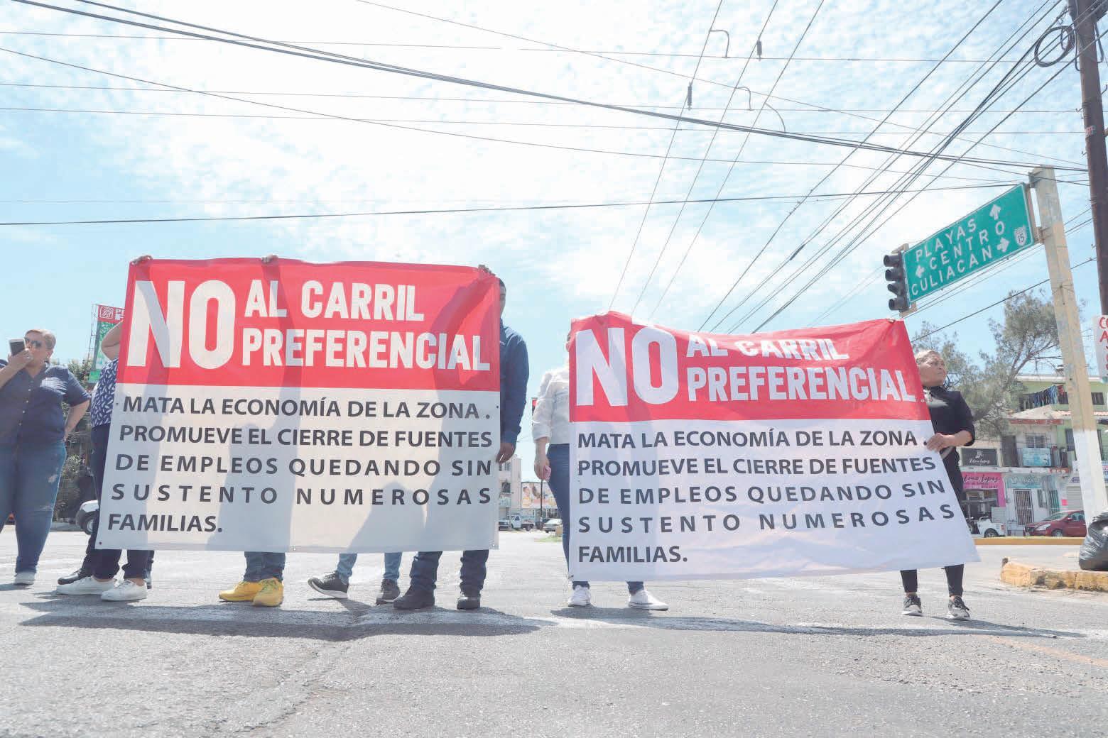 MAZATLÁN_ Un grupo de comerciantes bloqueó la Avenida Juan Carrasco en ambos sentidos, además de la Gutiérrez Nájera, en protesta por la implementación del carril preferencial para el transporte público.