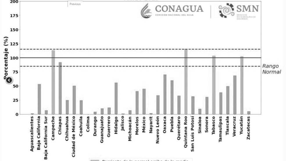 Por otro lado, las entidades que no presentan afectaciones son Tabasco y Yucatán; seguidas de Campeche y Quintana Roo, con un bajo porcentaje anormalmente seco, debido a que en febrero hubo lluvias por arriba del promedio y por los frentes fríos, detalla el Monitor de Sequía de Conagua.