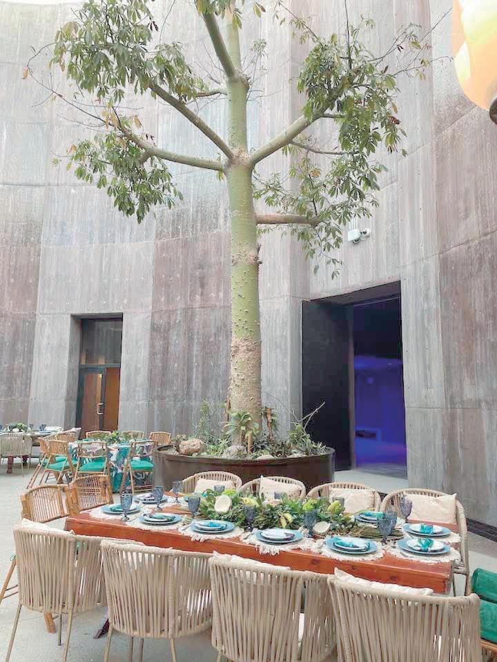 En ellas se observa una fiesta con numerosas mesas con arreglos florales y cubiertos y mantelería.