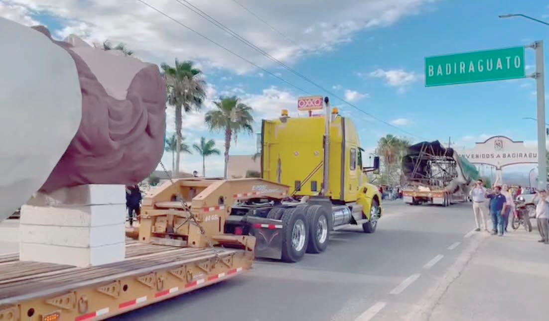 La estatua gigante de San Judas Tadeo, cuya altura es de 18 metros de altura, ya llegó a Badiraguato y se espera que en unos cuatro días ya inicien los trabajos de instalación. 8B