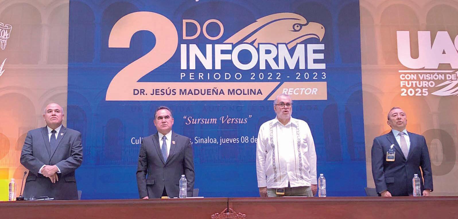 El Rector de la Universidad Autónoma de Sinaloa, Jesús Madueña Molina, presentó ante el Consejo Universitario su segundo Informe de Labores, en el que destacó un avance del 75 por ciento de metas a cumplir en su administración.