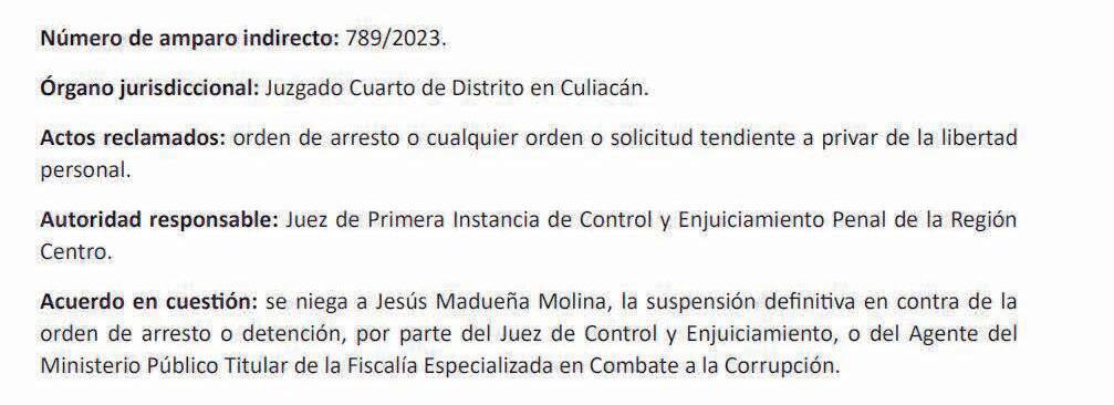 do un reposo de ocho días. Sus abogados defensores, Alfonso Carlos Ontiveros Salas y su hijo del mismo nombre, recibieron una copia de la carpeta de investigación que llevaron los fiscales, mientras que el otro juego se entregará el lunes a los defensores de Madueña Molina.