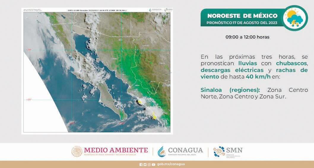 Sonora, Durango y Chihuahua, en las próximas horas, informó la coordinadora general del Servicio Meteorológico Nacional, de la Comisión Nacional del Agua, Alejandra Margarita Méndez Girón.