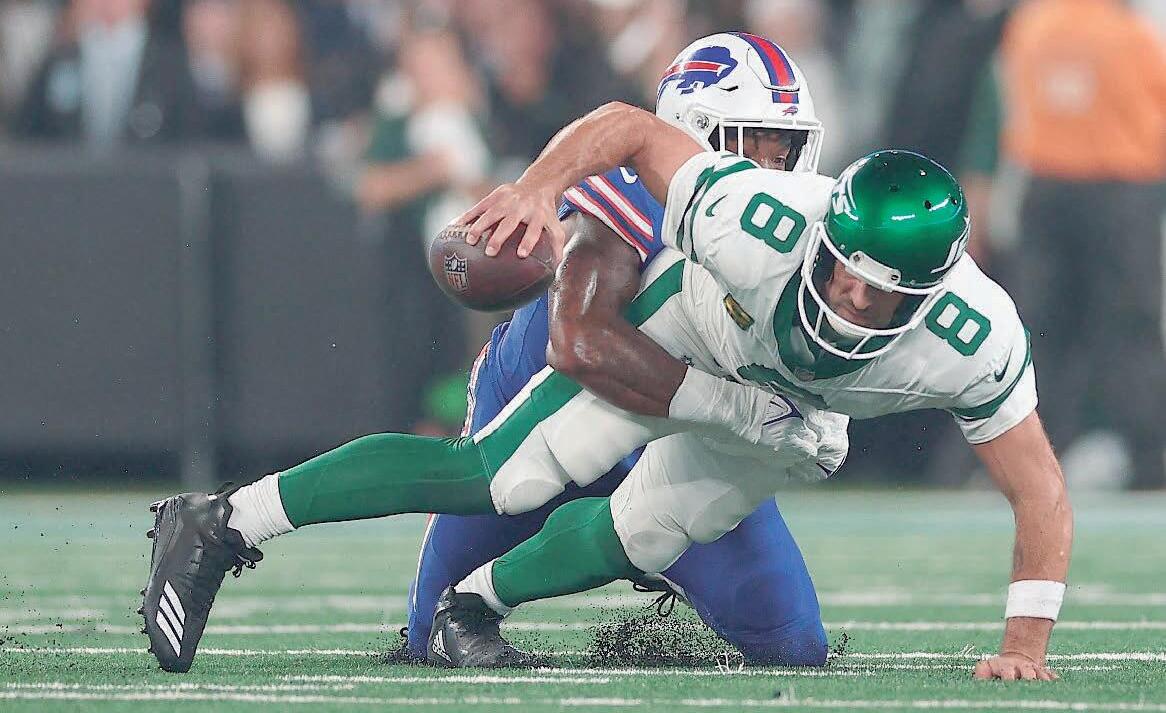 Los Jets de Nueva York sacaron un dramático triunfo en tiempo extra por 22-16 sobre los Bills de Buffalo, pero perdieron a su flamante mariscal de campo Aaron Rodgers en la primera jugada del encuentro.