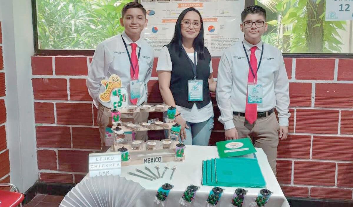 Jonathan Soberanes Santos y Jonathan López Leal, alumnos de la secundaria Profesor Joaquín Vizcarra Tiznado, de Alhuey, Angostura, crearon una barra nutritiva para ayudar a pacientes con leucemia en sus tratamientos. 1B