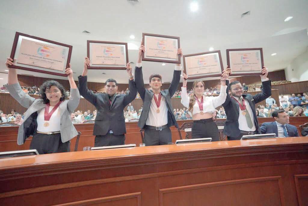 Jóvenes destacados en las categorías académica y científica, cívico, artístico, y empresarial, fueron reconocidos con el Premio al Mérito Juvenil que es otorgado por el Congreso del Estado. 1B