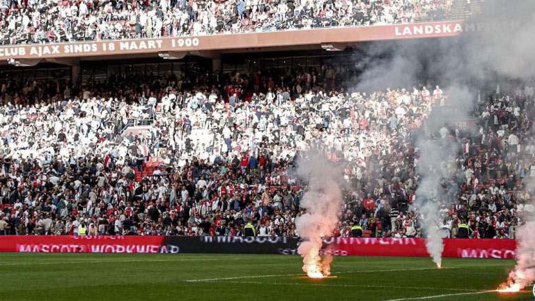El partido se encontraba 3-0 a favor del cuadro visitante, donde Giménez había marcado doblete, cuando al minuto 56 el árbitro Danny Desmond Makkelie decidió que los equipos se fueran a los vestidores del Johan Cruyff Arena debido al mal comportamiento de la afición de los de Ámsterdam.