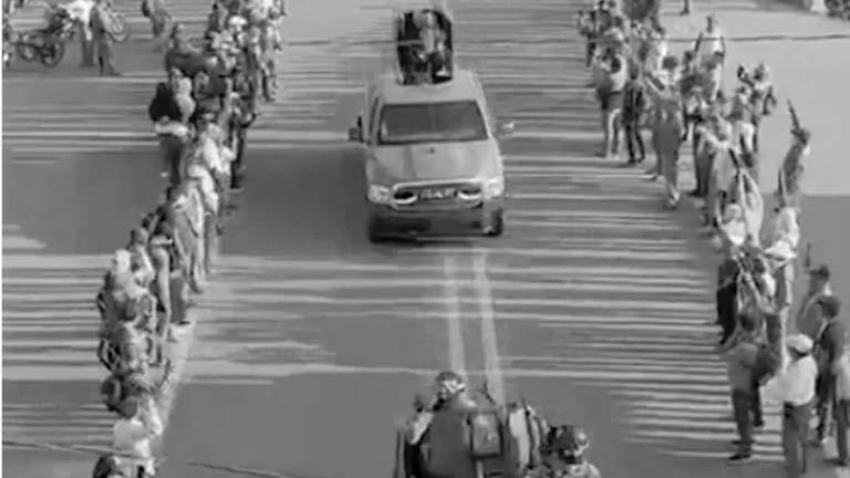 ¡Puro Sinaloa!, gritaban algunos en alusión al Cartel de Sinaloa, mientras como si de un desfile militar se tratara, fueron desfilando camionetas adaptadas como tanquetas de guerra. A bordo de ellas hombres con uniforme tipo militar llevaban metralletas y otras armas largas.