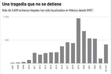 Desde que inició la guerra contra el crimen organizado en 2007, los entierros ilegales se han multiplicado. En el sexenio del Presidente López Obrador se han localizado 2,864 fosas clandestinas.
