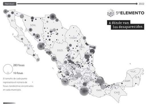 en cada una, pese a que este dato le fue proporcionado por las fiscalías estatales. Tampoco lo reporta en su mapa de hallazgos de entierros ilegales. Sexenio que brotaron fosas