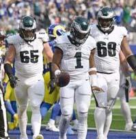 INGLEWOOD._ Jalen Hurts lanzó para 303 yardas con un touchdown y corrió para 72 yardas y otra anotación, para que los Filadelfia Eagles superaran 23-14 a Los Ángeles Rams este domingo y mantenerse invictos.