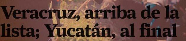 arriba de la lista; Yucatán, al final