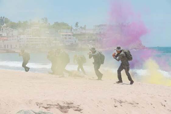 Ante decenas de turistas nacionales y extranjeros, personal de la Secretaría de Marina Armada de México realizó un ejercicio de desembarco anfibio y otro de salvamento en el mar, frente a la playa del Paseo Olas Altas, en este puerto. 6B