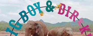En celebración de los esfuerzos del Santuario Ostok desde su apertura un día como hoy en 2021, unen en matrimonio a Big Boy y Bireki, los elefantes rescatados de carpas de circo que ahora habitan en el refugio. 1B