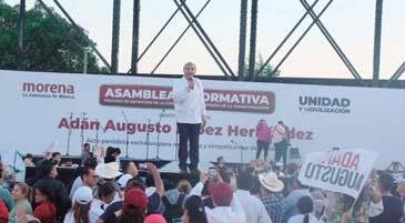 En la asamblea informativa que encabezó en Culiacán, el aspirante a la candidatura presidencial por Morena, propuso que los adultos mayores reciban pensión a partir de los 63 años de edad El aspirante a la candidatura presidencial por Morena, Adán Augusto López Hernández, cerró su gira de asambleas informativas con un mitin en e Parque Acuático en Culiacán.