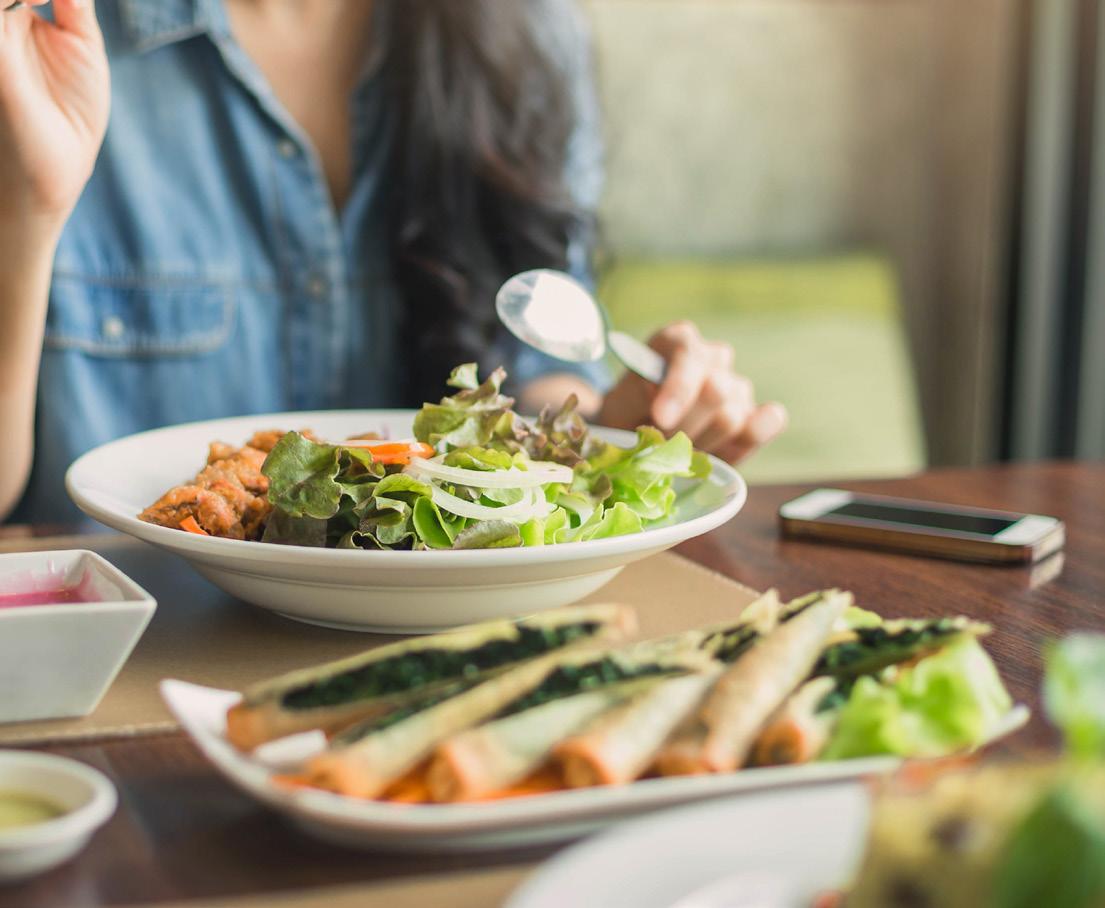 • Sitt ner när du äter, men inte framför tv:n eller datorn. Ät i en avslappnad, lugn och mysig atmosfär och tugga långsamt. Ät inte stora måltider i stressiga situationer. Vårt psykiska tillstånd hör ihop med det som vi stoppar i munnen, vilket i sin tur har relation till hur vi tar upp och använder det vi äter.